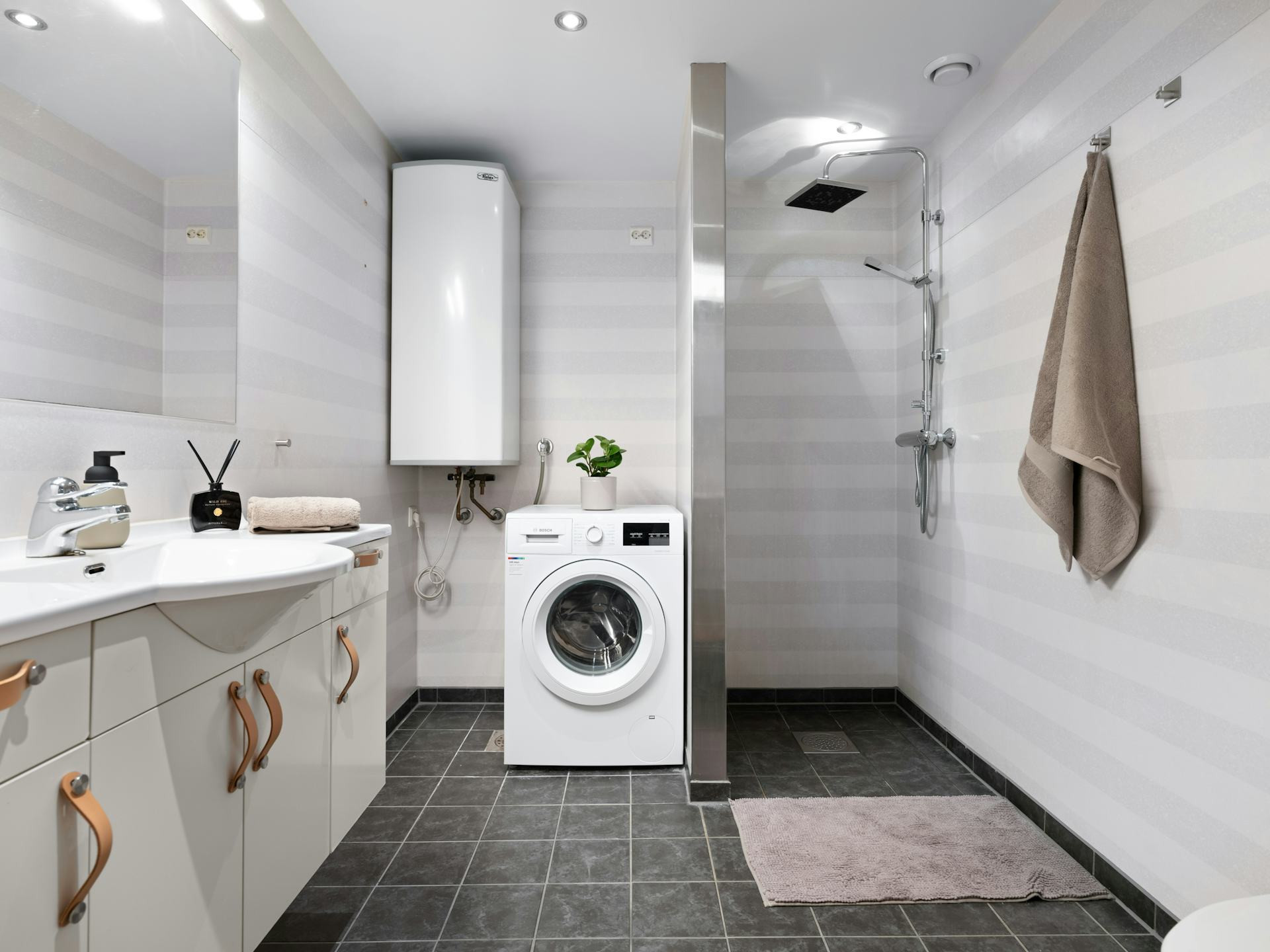 Myös keittiön akustiikka vaikuttaa. Kovapintaiset materiaalit, kuten laatat, lasi ja metalli, heijastavat ääntä, kun taas puu ja tekstiilit vaimentavat sitä. Keittiö, jossa on paljon kovia pintoja, kuulostaa helposti äänekkäämmältä, vaikka liesituuletin olisi sama.